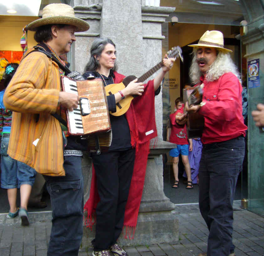 Legendary Machynlleth band Cloud Cuckoo, including event organisers Tony, Polly and Mike, got everyone dancing